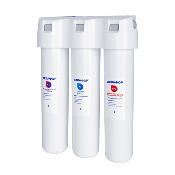 Обратноосмотические фильтры используются для абсолютной защиты от накипи, т.к. полностью устраняют соли жесткости из воды.нетЧисло ступеней очисткиКартриджи последовательно очищают воду и от видимых примесей, и от растворенных. Первый картридж задерживает более крупные частицы, а каждый последующий - более мелкие. Чем больше ступеней - тем лучше фильтр очистит воду: поймает более мелкие видимые частицы ржавчины, песка и ила, успеет захватить из воды максимум растворенных примесей - хлора, нитратов, тяжелых металлов и других.4МинерализацияПроисходит после финишной очистки воды. Необходима прежде всего в фильтре обратного осмоса, поскольку такой фильтр полностью устраняет из воды все примеси, в том числе минералы. Минералы добавляются в оптимальной концентрации - для пользы и привычного вкуса воды.нетПостфильтрацияФинальный этап очистки воды: картриджи постфильтрации удаляют самые мелкие механические частицы и кондиционируют воду, придавая ей более приятный вкус.нетНакопительная емкостьОбычно нужна в фильтрах обратного осмоса. Глубокая фильтрация требует времени. Чтобы Вам не приходилось ждать, пока вода наберется в чайник или кастрюлю, почти во всех моделях используется накопительный бак для чистой воды или другая емкость. В стандартном фильтре обратного осмоса под мойку воды в баке достаточно для семьи из 5-6 человек.нетФильтрующий модуль в комплектедаОтдельный крандаДавление в водопроводе не более, атмМаксимальное давление воды на входе в систему, при котором возможна стабильная работа фильтра.6,5Ширина, смОбратите внимание на габариты фильтра, и измерьте, сколько свободного пространства в предполагаемом месте установки.26,0Глубина, смОбратите внимание на габариты фильтра, и измерьте, сколько свободного пространства в предполагаемом месте установки.9,0Защита корпуса от гидроударовдаИсходная водаЖесткая вода – вода с избытком минеральных солей. От нее появляется накипь в чайнике, известковый налет на сантехнике и разводы на посуде. Мягкая вода – та, в которой мало минеральных солей. Нет накипи в чайнике и разводов на посуде. Фильтры для мутной воды и фильтры от ржавчины, как правило, имеют несколько стадий очистки и дополнительный полипропиленовый картридж. Он задерживает механические частицы ила, песка и ржавчины и защищает картриджи более глубокой очистки.мягкаяУстраняет мутностьМутность водопроводной воды может говорить о том, что в ней много мелких механических частиц. Важно, чтобы в фильтре был установлен дополнительные картридж механической предфильтрации (полипропиленовый) - он продлит жизнь остальным картриджам более тонкой очистки.даУстраняет ржавчину, бурый осадокЛюбой фильтр под мойку удалит из воды крупные и мелкие частицы ржавчины. Некоторые фильтры имеют повышенный ресурс по железу: они дольше служат в такой воде, поскольку лучше подходят для удаления из воды железа и механических частиц ржавчины.даЗащита от бактерийВсе проточные фильтры в той или иной степени защищают от бактерий. Например, добавление серебра препятствует их размножению. Это стандартная степень защиты. Если в семье есть дети, пожилые люди или аллергики, воду рекомендуется обеззараживать, то есть полностью удалять микроорганизмы. Повышенную защиту от бактерий дают фильтры с половолоконной мембраной. Это пучок трубо