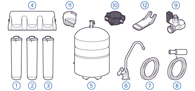 В фильтрах обратного осмоса установлена мембрана, которая не пропускает ничего, кроме воды (вода проходит через неё под давлением). Такой фильтр делает безопасной водопроводную воду любого качества, удаляя все вредные примеси: бактерии, вирусы, хлор, тяжелые металлы, нитраты, фармацевтику. Обратноосмотические фильтры используются для абсолютной защиты от накипи, т.к. полностью устраняют соли жесткости из воды.  |