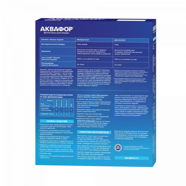 • Комплект сменных модулей глубокой очистки. Оптимален для мягкой воды. В условиях жесткой воды он полностью выполняет функцию глубокой очистки от вредных примесей, однако не снижает минерализацию. Поэтому, если при кипячении на нагревательных элементах образуется белый налет, рекомендуем рассмотреть специализированный комплект с умягчающим модулем для глубокой очистки воды.