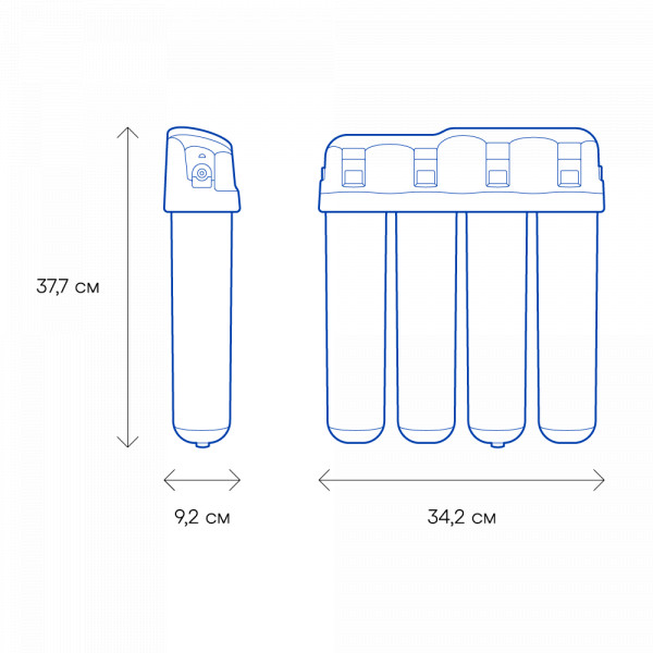 Обратноосмотические фильтры используются для абсолютной защиты от накипи, т.к. полностью устраняют соли жесткости из воды.нетЧисло ступеней очисткиКартриджи последовательно очищают воду и от видимых примесей, и от растворенных. Первый картридж задерживает более крупные частицы, а каждый последующий - более мелкие. Чем больше ступеней - тем лучше фильтр очистит воду: поймает более мелкие видимые частицы ржавчины, песка и ила, успеет захватить из воды максимум растворенных примесей - хлора, нитратов, тяжелых металлов и других.5МинерализацияПроисходит после финишной очистки воды. Необходима прежде всего в фильтре обратного осмоса, поскольку такой фильтр полностью устраняет из воды все примеси, в том числе минералы. Минералы добавляются в оптимальной концентрации - для пользы и привычного вкуса воды.нетПостфильтрацияФинальный этап очистки воды: картриджи постфильтрации удаляют самые мелкие механические частицы и кондиционируют воду, придавая ей более приятный вкус.нетНакопительная емкостьОбычно нужна в фильтрах обратного осмоса. Глубокая фильтрация требует времени. Чтобы Вам не приходилось ждать, пока вода наберется в чайник или кастрюлю, почти во всех моделях используется накопительный бак для чистой воды или другая емкость. В стандартном фильтре обратного осмоса под мойку воды в баке достаточно для семьи из 5-6 человек.нетФильтрующий модуль в комплектедаОтдельный крандаДавление в водопроводе не более, атмМаксимальное давление воды на входе в систему, при котором возможна стабильная работа фильтра.6,5Ширина, смОбратите внимание на габариты фильтра, и измерьте, сколько свободного пространства в предполагаемом месте установки.37,7Глубина, смОбратите внимание на габариты фильтра, и измерьте, сколько свободного пространства в предполагаемом месте установки.9,2Защита корпуса от гидроударовдаИсходная водаЖесткая вода – вода с избытком минеральных солей. От нее появляется накипь в чайнике, известковый налет на сантехнике и разводы на посуде. Мягкая вода – та, в которой мало минеральных солей. Нет накипи в чайнике и разводов на посуде. Фильтры для мутной воды и фильтры от ржавчины, как правило, имеют несколько стадий очистки и дополнительный полипропиленовый картридж. Он задерживает механические частицы ила, песка и ржавчины и защищает картриджи более глубокой очистки.жёсткаяУстраняет мутностьМутность водопроводной воды может говорить о том, что в ней много мелких механических частиц. Важно, чтобы в фильтре был установлен дополнительные картридж механической предфильтрации (полипропиленовый) - он продлит жизнь остальным картриджам более тонкой очистки.даУстраняет ржавчину, бурый осадокЛюбой фильтр под мойку удалит из воды крупные и мелкие частицы ржавчины. Некоторые фильтры имеют повышенный ресурс по железу: они дольше служат в такой воде, поскольку лучше подходят для удаления из воды железа и механических частиц ржавчины.даЗащита от бактерийВсе проточные фильтры в той или иной степени защищают от бактерий. Например, добавление серебра препятствует их размножению. Это стандартная степень защиты. Если в семье есть дети, пожилые люди или аллергики, воду рекомендуется обеззараживать, то есть полностью удалять микроорганизмы. Повышенную защиту от бактерий дают фильтры с половолоконной мембраной. Это пучок труб