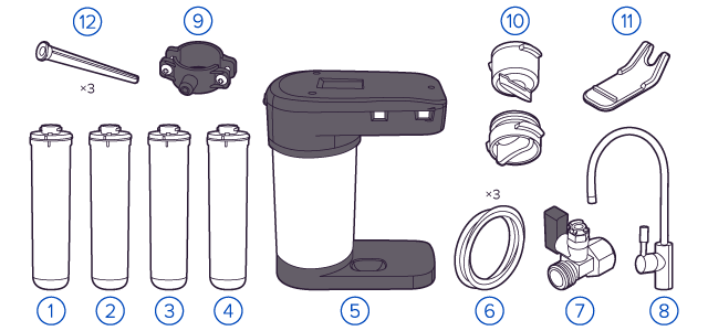 Обратноосмотические фильтры используются для абсолютной защиты от накипи, т.к. полностью устраняют соли жесткости из воды.даЧисло ступеней очисткиКартриджи последовательно очищают воду и от видимых примесей, и от растворенных. Первый картридж задерживает более крупные частицы, а каждый последующий - более мелкие. Чем больше ступеней - тем лучше фильтр очистит воду: поймает более мелкие видимые частицы ржавчины, песка и ила, успеет захватить из воды максимум растворенных примесей - хлора, нитратов, тяжелых металлов и других.6МинерализацияПроисходит после финишной очистки воды. Необходима прежде всего в фильтре обратного осмоса, поскольку такой фильтр полностью устраняет из воды все примеси, в том числе минералы. Минералы добавляются в оптимальной концентрации - для пользы и привычного вкуса воды.даПостфильтрацияФинальный этап очистки воды: картриджи постфильтрации удаляют самые мелкие механические частицы и кондиционируют воду, придавая ей более приятный вкус.даНакопительная емкостьОбычно нужна в фильтрах обратного осмоса. Глубокая фильтрация требует времени. Чтобы Вам не приходилось ждать, пока вода наберется в чайник или кастрюлю, почти во всех моделях используется накопительный бак для чистой воды или другая емкость. В стандартном фильтре обратного осмоса под мойку воды в баке достаточно для семьи из 5-6 человек.даФильтрующий модуль в комплектедаОтдельный крандаДавление в водопроводе не менее, атм2,0Давление в водопроводе не более, атмМаксимальное давление воды на входе в систему, при котором возможна стабильная работа фильтра.6,5Защита корпуса от гидроударовдаИсходная водаЖесткая вода – вода с избытком минеральных солей. От нее появляется накипь в чайнике, известковый налет на сантехнике и разводы на посуде. Мягкая вода – та, в которой мало минеральных солей. Нет накипи в чайнике и разводов на посуде. Фильтры для мутной воды и фильтры от ржавчины, как правило, имеют несколько стадий очистки и дополнительный полипропиленовый картридж. Он задерживает механические частицы ила, песка и ржавчины и защищает картриджи более глубокой очистки.любаяУстраняет мутностьМутность водопроводной воды может говорить о том, что в ней много мелких механических частиц. Важно, чтобы в фильтре был установлен дополнительные картридж механической предфильтрации (полипропиленовый) - он продлит жизнь остальным картриджам более тонкой очистки.даУстраняет ржавчину, бурый осадокЛюбой фильтр под мойку удалит из воды крупные и мелкие частицы ржавчины. Некоторые фильтры имеют повышенный ресурс по железу: они дольше служат в такой воде, поскольку лучше подходят для удаления из воды железа и механических частиц ржавчины.даЗащита от бактерийВсе проточные фильтры в той или иной степени защищают от бактерий. Например, добавление серебра препятствует их размножению. Это стандартная степень защиты. Если в семье есть дети, пожилые люди или аллергики, воду рекомендуется обеззараживать, то есть полностью удалять микроорганизмы. Повышенную защиту от бактерий дают фильтры с половолоконной мембраной. Это пучок трубок с порами размером 0,1 микрон (что в 1000 раз тоньше человеческого волоса) - бактерии и яйца паразитов “застревают”, как в “сите”. Полученную воду не придется кипятить и можно использовать для приготовления детского питания. Абсол