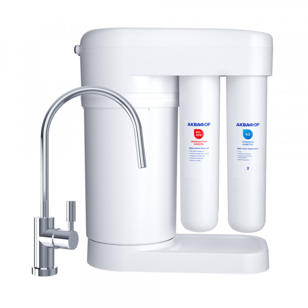 Обратноосмотические фильтры используются для абсолютной защиты от накипи, т.к. полностью устраняют соли жесткости из воды.даЧисло ступеней очисткиКартриджи последовательно очищают воду и от видимых примесей, и от растворенных. Первый картридж задерживает более крупные частицы, а каждый последующий - более мелкие. Чем больше ступеней - тем лучше фильтр очистит воду: поймает более мелкие видимые частицы ржавчины, песка и ила, успеет захватить из воды максимум растворенных примесей - хлора, нитратов, тяжелых металлов и других.4МинерализацияПроисходит после финишной очистки воды. Необходима прежде всего в фильтре обратного осмоса, поскольку такой фильтр полностью устраняет из воды все примеси, в том числе минералы. Минералы добавляются в оптимальной концентрации - для пользы и привычного вкуса воды.даПостфильтрацияФинальный этап очистки воды: картриджи постфильтрации удаляют самые мелкие механические частицы и кондиционируют воду, придавая ей более приятный вкус.даНакопительная емкостьОбычно нужна в фильтрах обратного осмоса. Глубокая фильтрация требует времени. Чтобы Вам не приходилось ждать, пока вода наберется в чайник или кастрюлю, почти во всех моделях используется накопительный бак для чистой воды или другая емкость. В стандартном фильтре обратного осмоса под мойку воды в баке достаточно для семьи из 5-6 человек.даФильтрующий модуль в комплектедаОтдельный крандаДавление в водопроводе не более, атмМаксимальное давление воды на входе в систему, при котором возможна стабильная работа фильтра.6,5Ширина, смОбратите внимание на габариты фильтра, и измерьте, сколько свободного пространства в предполагаемом месте установки.37,1Глубина, смОбратите внимание на габариты фильтра, и измерьте, сколько свободного пространства в предполагаемом месте установки.19,0Защита корпуса от гидроударовдаИсходная водаЖесткая вода – вода с избытком минеральных солей. От нее появляется накипь в чайнике, известковый налет на сантехнике и разводы на посуде. Мягкая вода – та, в которой мало минеральных солей. Нет накипи в чайнике и разводов на посуде. Фильтры для мутной воды и фильтры от ржавчины, как правило, имеют несколько стадий очистки и дополнительный полипропиленовый картридж. Он задерживает механические частицы ила, песка и ржавчины и защищает картриджи более глубокой очистки.любаяУстраняет мутностьМутность водопроводной воды может говорить о том, что в ней много мелких механических частиц. Важно, чтобы в фильтре был установлен дополнительные картридж механической предфильтрации (полипропиленовый) - он продлит жизнь остальным картриджам более тонкой очистки.даУстраняет ржавчину, бурый осадокЛюбой фильтр под мойку удалит из воды крупные и мелкие частицы ржавчины. Некоторые фильтры имеют повышенный ресурс по железу: они дольше служат в такой воде, поскольку лучше подходят для удаления из воды железа и механических частиц ржавчины.даЗащита от бактерийВсе проточные фильтры в той или иной степени защищают от бактерий. Например, добавление серебра препятствует их размножению. Это стандартная степень защиты. Если в семье есть дети, пожилые люди или аллергики, воду рекомендуется обеззараживать, то есть полностью удалять микроорганизмы. Повышенную защиту от бактерий дают фильтры с половолоконной мембраной. Это пучок трубок с по
